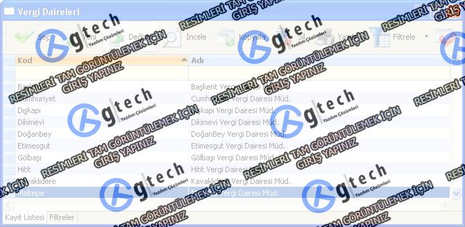 Firma yada ilgili kişiler "Vergi Dairesi" alanında vergi dairesi seçmenin iki yolu vardır. Birincisi "Vergi Dairesi" sonunda bulunan simgesine tıklayıp her defasında listeleme ekranından ilgili vergi dairesini seçmek. Bu biraz daha uzun süren işlemdir.