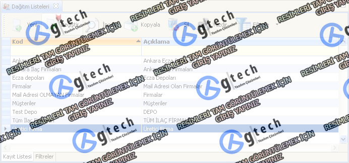 | Dağıtım Listeleri listeleme ekranına ulaşmak için Yardım Menüsü / Perspektif Aç / Genel Perspektif / Adres Yönetimi / Dağıtım Listeleri yolu izlenmelidir. |