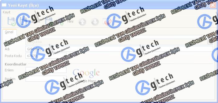 Oluşturulan ile ait eklenmek istenilen ilçeler "İlçeler"sekmesinin altında bulunan "Yeni" Simgesine tıklanarak oluşturulmaya başlanabilir. İlçeye ait koordinatlar google maps kullanılarak bulunabilir.