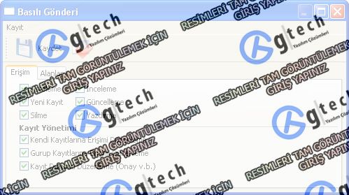 Yeni Kayıt : Kullanıcıların yeni  firma ya da kişi kaydı yapıp yapamaması ile ilgili yetkilendirilmesidir.